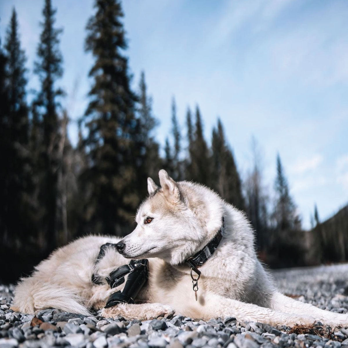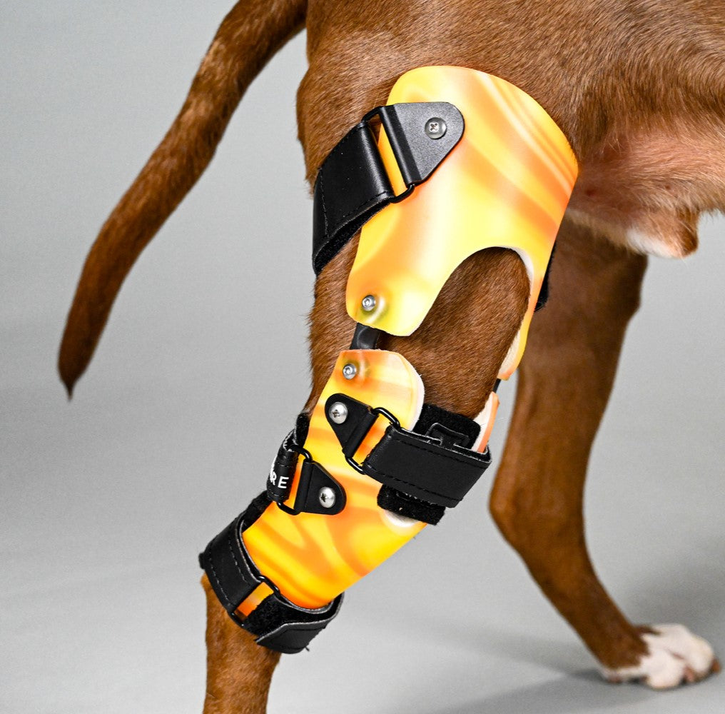 Beautiful fall day going for a walk with Banyan strutting in his bilateral AOC dog knee brace.