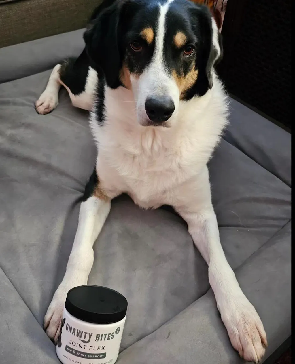 I love the Gnawty Bites joint flex for my dogs. Especially Daisy, she had a torn ACL and the vet said to do surgery. We opted to go with Animal Ortho for a fitted leg brace. Daisy wore that for 18 mos and is now pain free and healed from the tear. Amazing company to work with us to get the best fit for our dog.