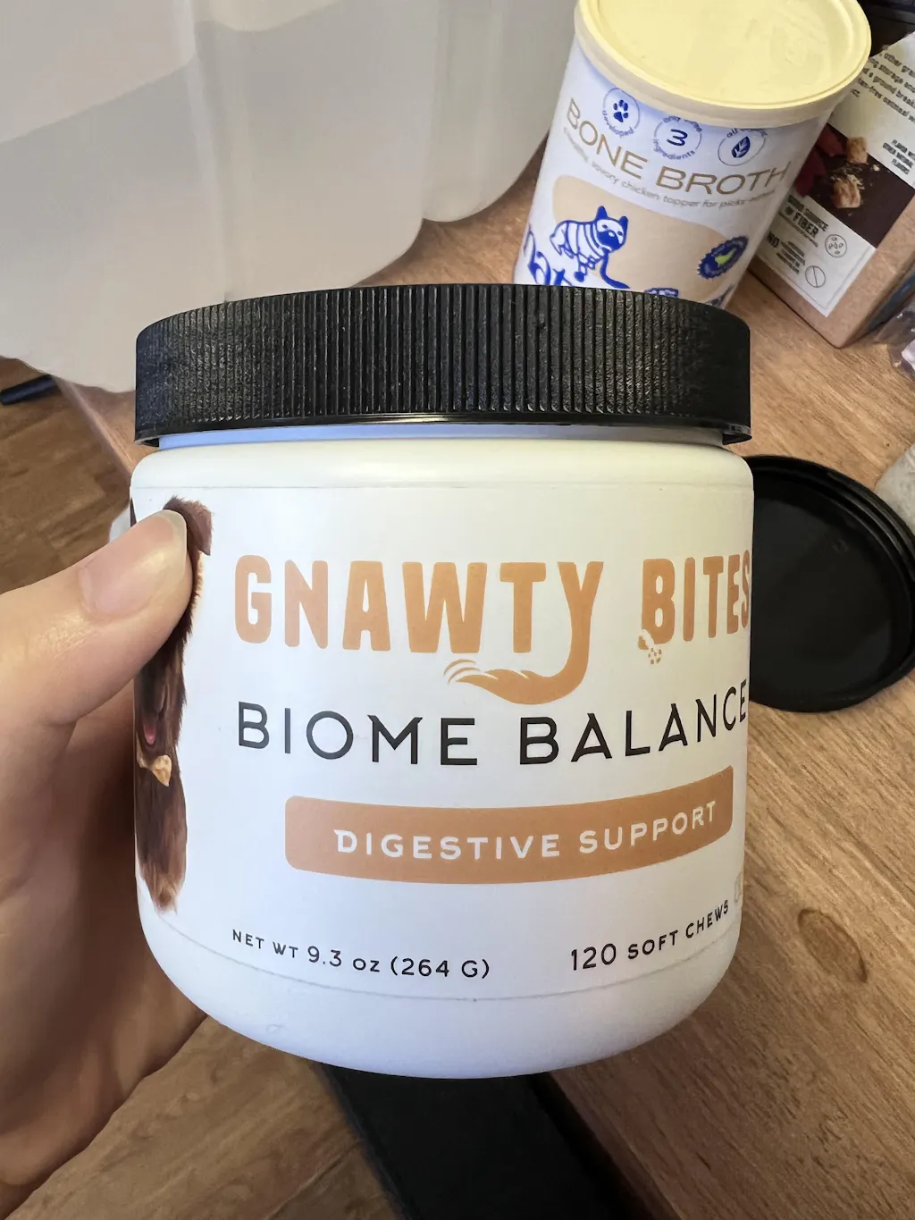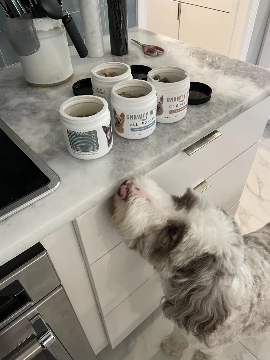 My pup is a free for all when it comes to vacuuming things off the floor. Including the gnawty bites biome balance into her meal every day has been an amazing improvements; I can see the probiotic and enzyme blend at work. No longer is it a free for all when it comes to her poo. She loves to eat them, and I love how soft they are to crush into her food for everyday use. I'm so glad that these supplements are doing their work AND my doggo loves them.