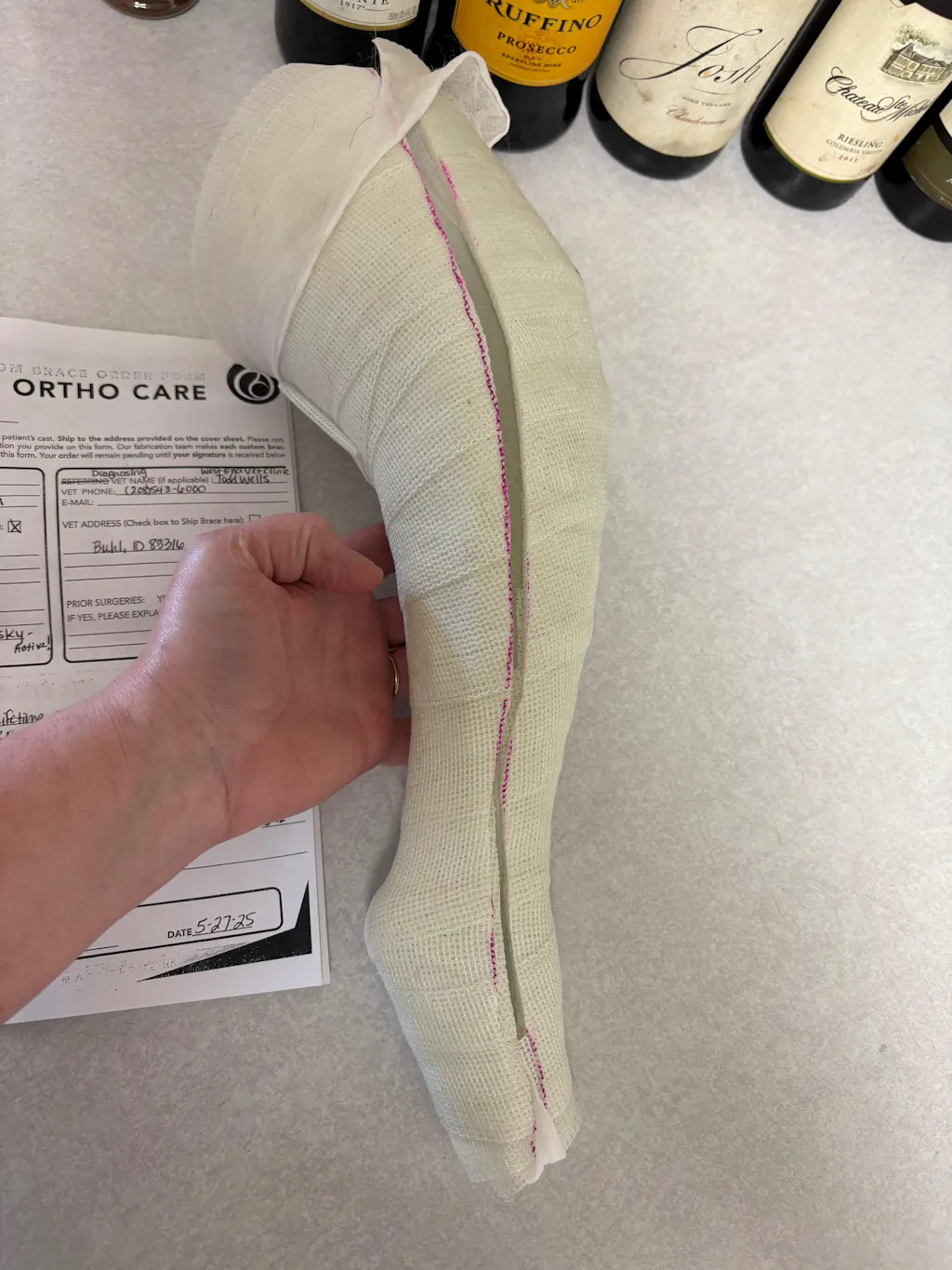 The casting kit worked fine and the Ortho Brace fits perfectly. It adds support to her rear leg from the torn ligament and her knee Knee.