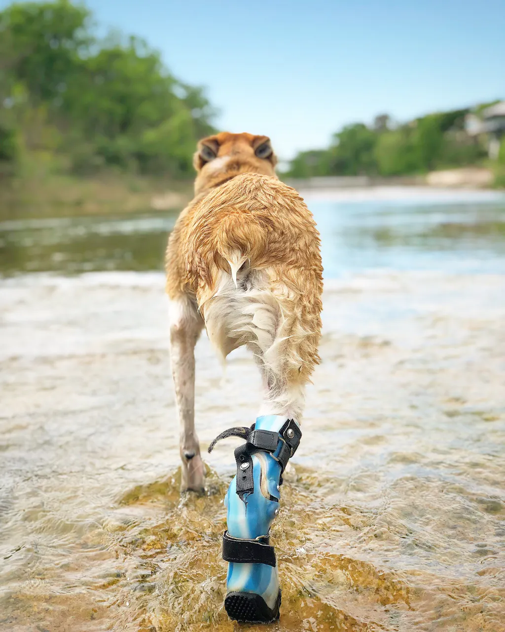 This prosthetic has changed Olaf’s life. After having sepsis and losing a hind leg and all of his toes on his other hind leg, he couldn’t even walk. He is an active pup that loves to play with other dogs and was always so sad watching him try to run on his two front legs. This prosthetic has helped him enjoy life more and now he can run with the rest of the dogs, swim, and even goes on nature trails. He is so much happier and so thankful for this company for making this happen for him!